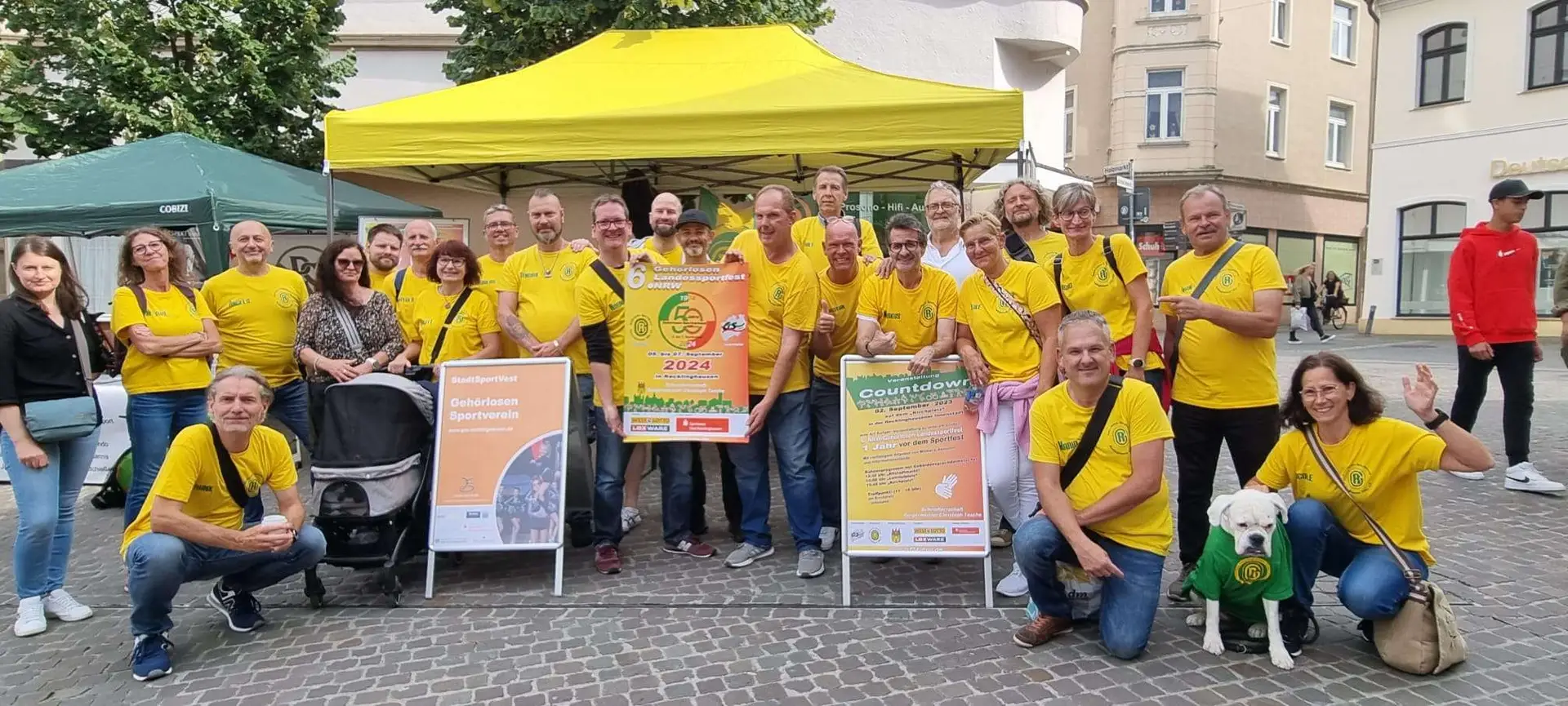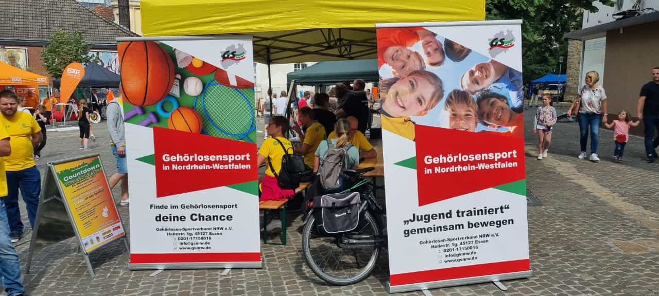 In exakt einem Jahr findet in Recklinghausen das 6. NRW-Gehörlosen-Landessportfest statt und gleichzeitig das 50 Jahre Jubiläum des Gehörlosen Sportverbandes NRW. Der Gehörlosen-Sportverband NRW und der Gehörlosen-Sportverein Recklinghausen haben dafür einen Countdown-Tag im Rahmen des StadtSportVest in Recklinghausen veranstaltet. Ca. 50 Gehörlose kamen zum StadtSportVest nach Recklinghausen und auch viele hörende Besucher haben den Auftritt und die Interviews von Steffen Rosewig, Christian Stern und Ralf Geerk an 3 verschiedenen Bühnen über den „Save the Date“ in Gebärdensprache gesehen.