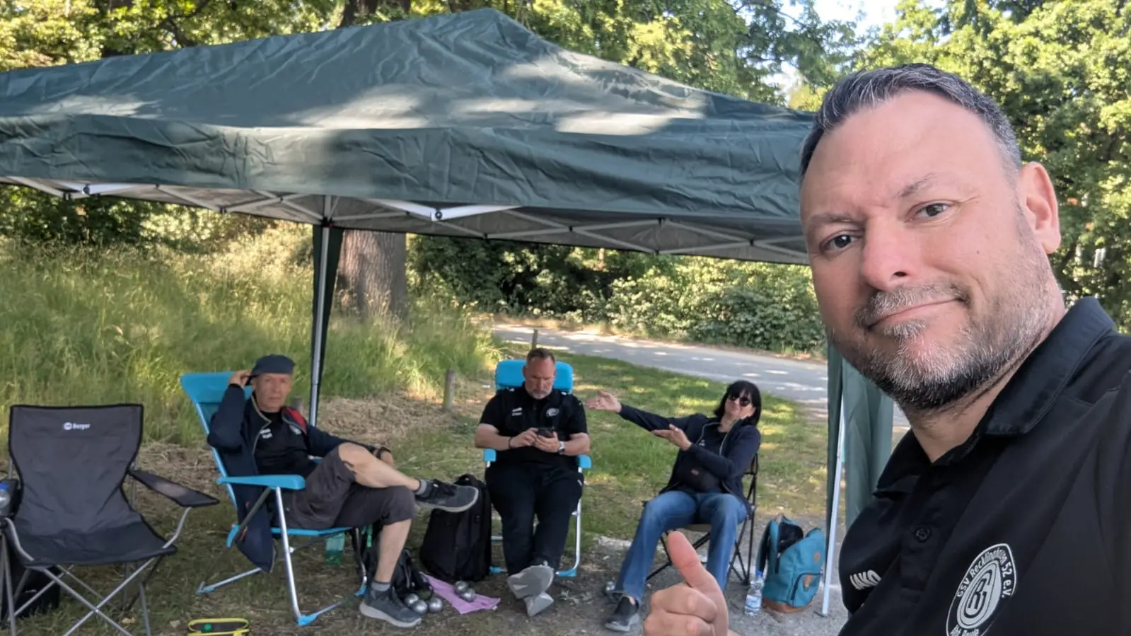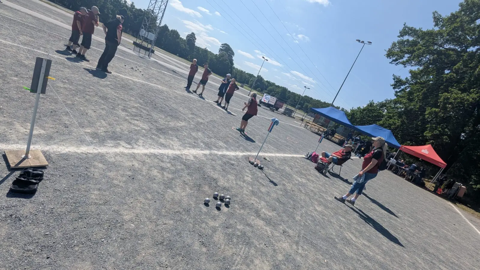 Trotz der heißeren Temperaturen bot der mitgebrachte Pavillon willkommenen Schatten. Am Freitagtraten 26 Doublette-Mannschaften an, darunter zwei Teams des GSV Recklinghausen: Ralf G./Gabriele R. und Sven S./Marco K. Besonders stolz sind wir auf Ralf und Gabriele, die mit einem starken 3. Platz bronzene Medaillen gewannen – herzlichen Glückwunsch!