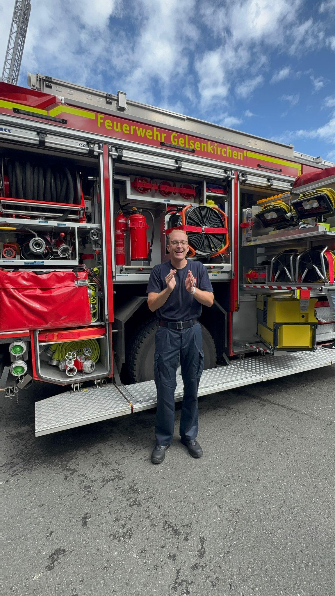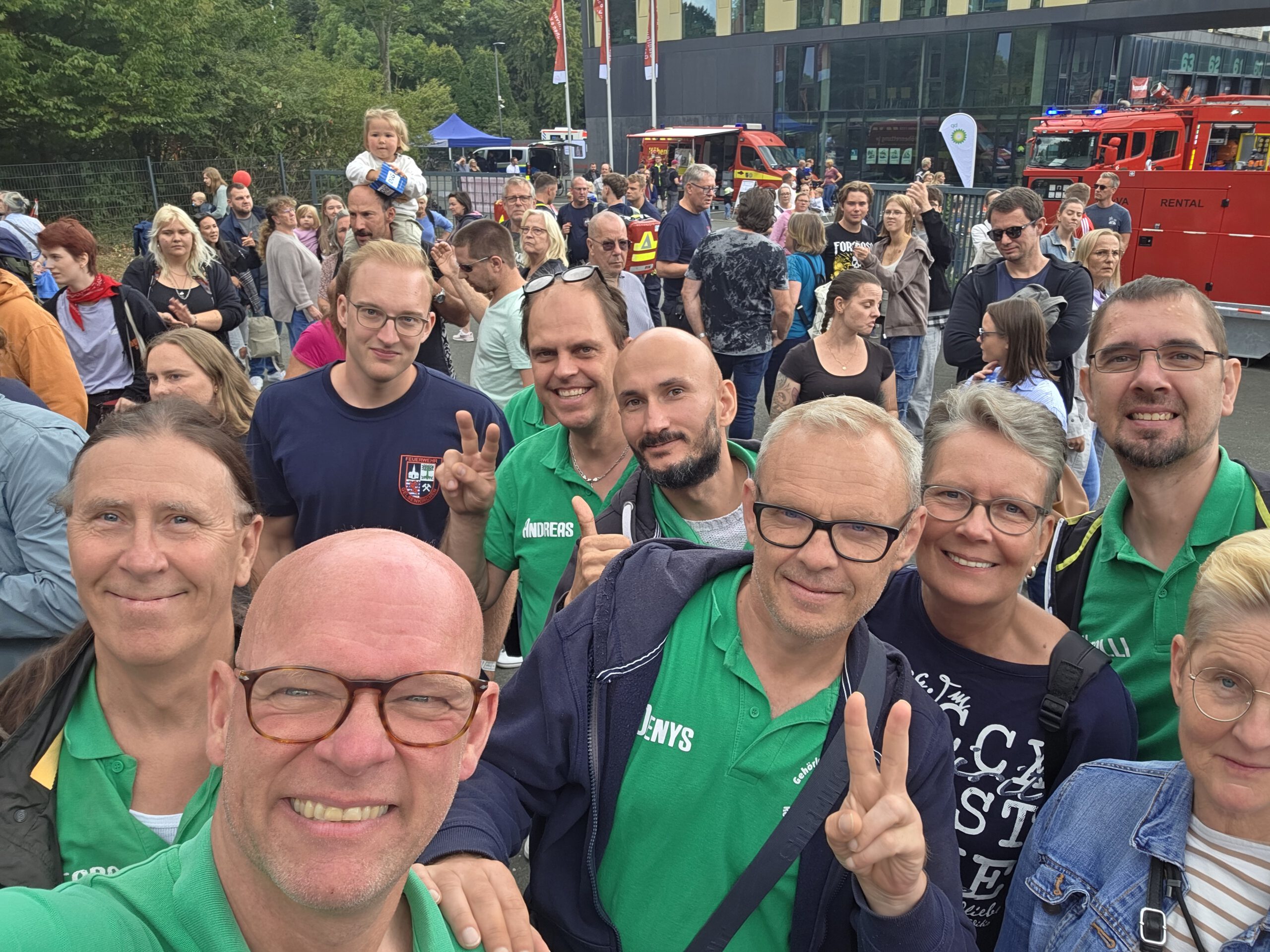 Am Samstag, den 23.8.2025, war das Feuerwehrfest in Gelsenkirchen. Um 10:15 Uhr trafen sich 14 Personen. Christian´s Sohn kam dazu und führte für uns in Gebärdensprache.
