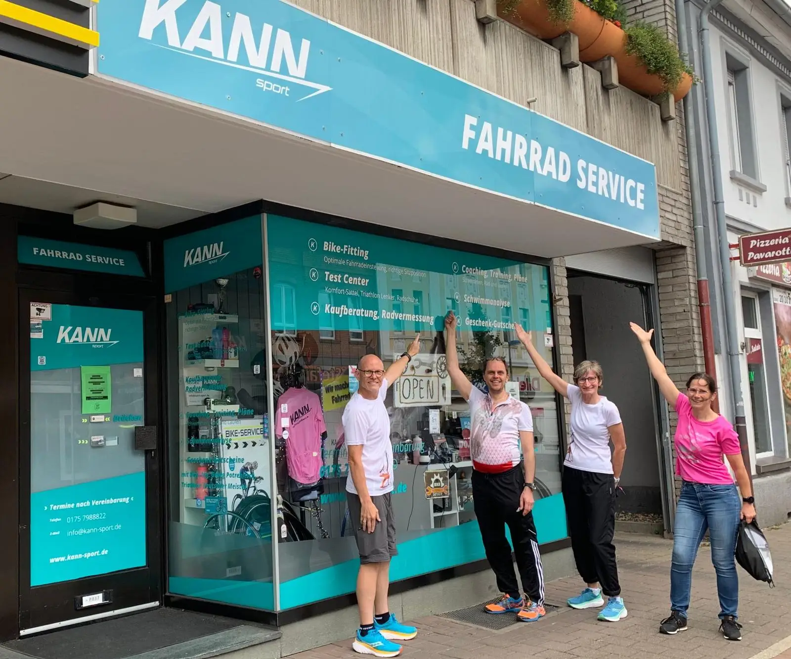 Anschließend besuchten die Teilnehmer (Rainer u. Ingrid Korte und Nicole Piepke) das Geschäft ‚KANN SPORT – Bike-Fitting‘ von Georg Potrebitsch. Georg Potrebitsch führte uns durch das Geschäft. Wir hatten viele Fragen, Gespräche und Meinungsaustausch. Georg Potrebitsch empfahl uns für den Triathlon in Gladbeck (Olympische Distanz oder Volkstriathlon) im nächsten Jahr / Mai 2025.