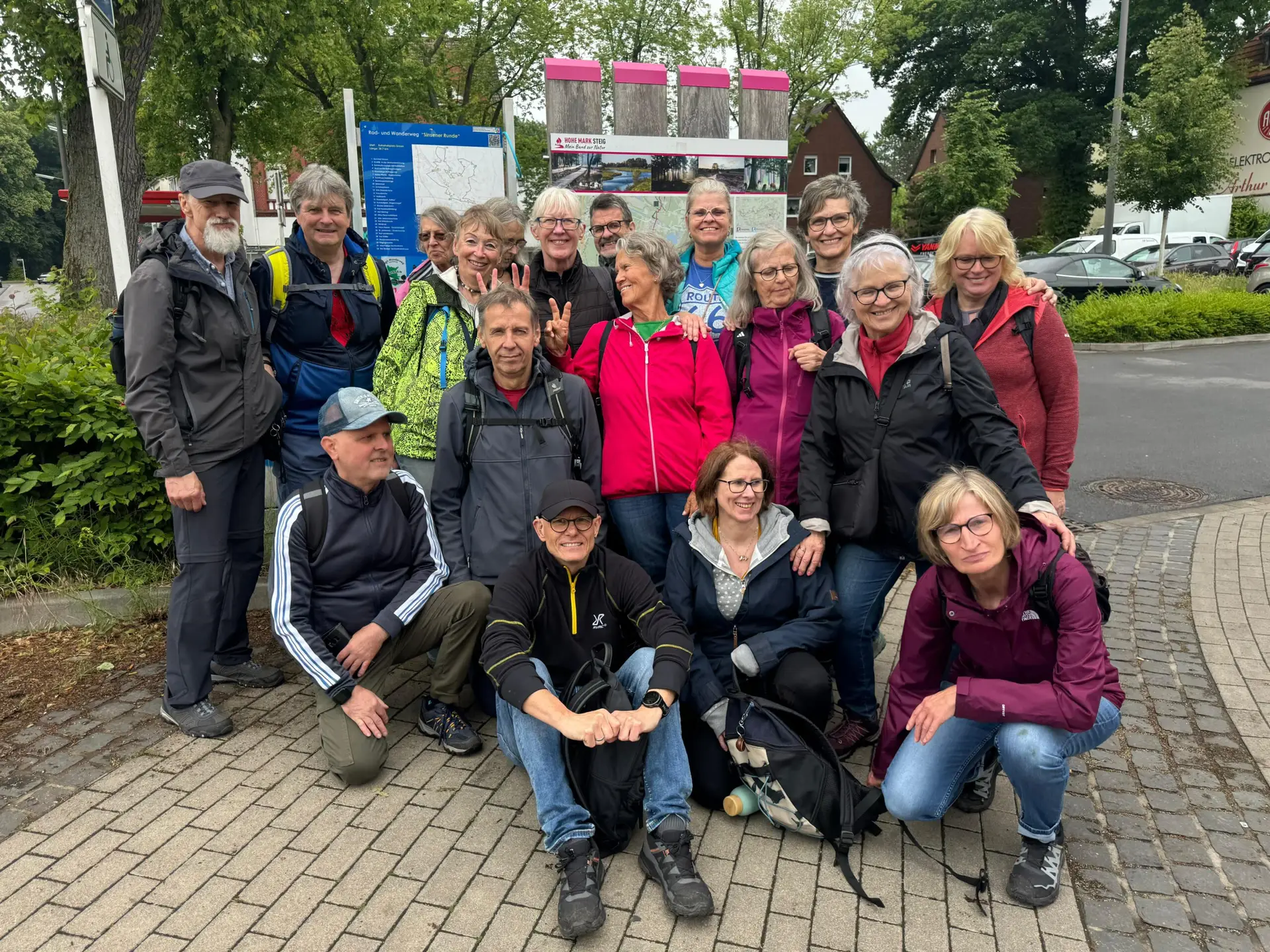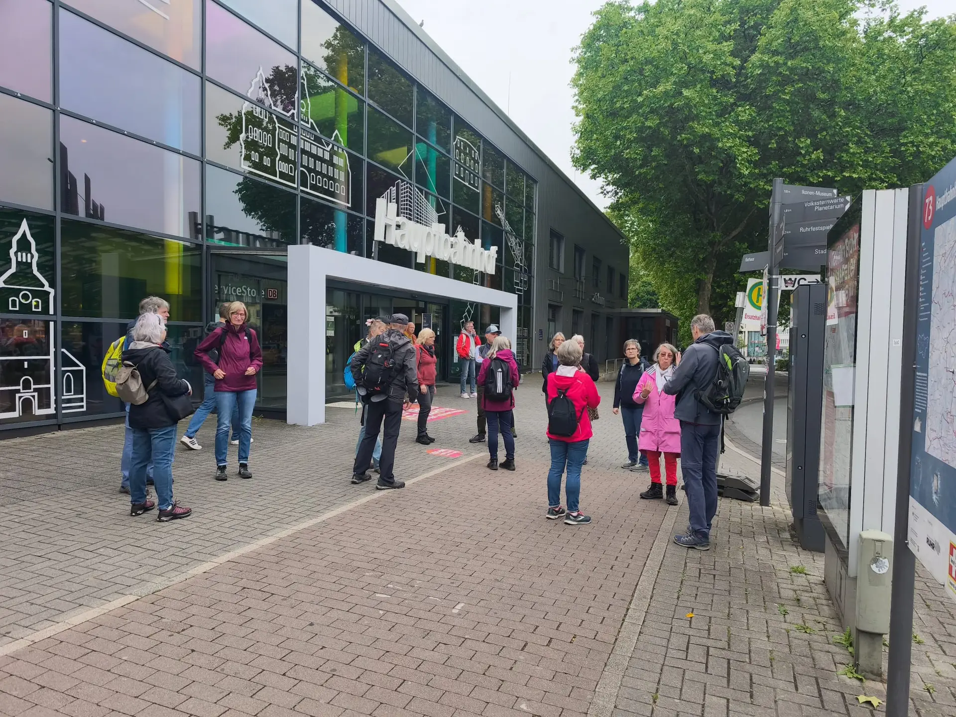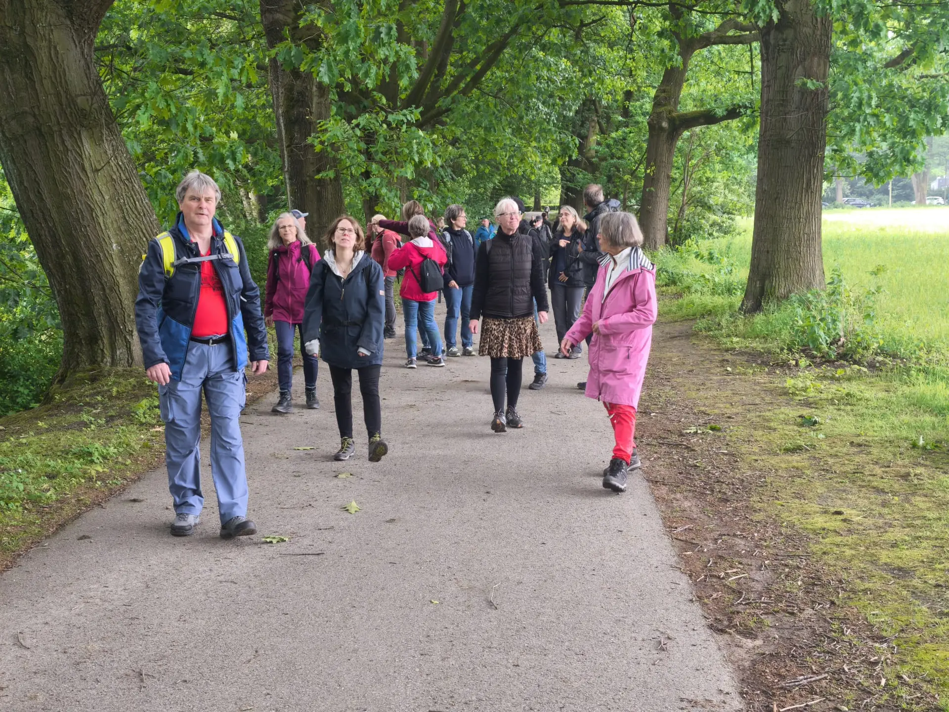 Am 29. Mai 2025 (Vatertag) trafen sich 18 Teilnehmerinnen am Bahnhof Recklinghausen und starteten ihre Wanderung um etwa 10:15 Uhr. Zunächst passierten wir das Kriegerdenkmal des Ersten Weltkriegs. Der Wanderleiter stellte eine Quizfrage: „Wie viele Namen der Gefallenen stehen auf dem Ehrenmal am Lohtor?“ – Die Antwort: 1.920 Namen.