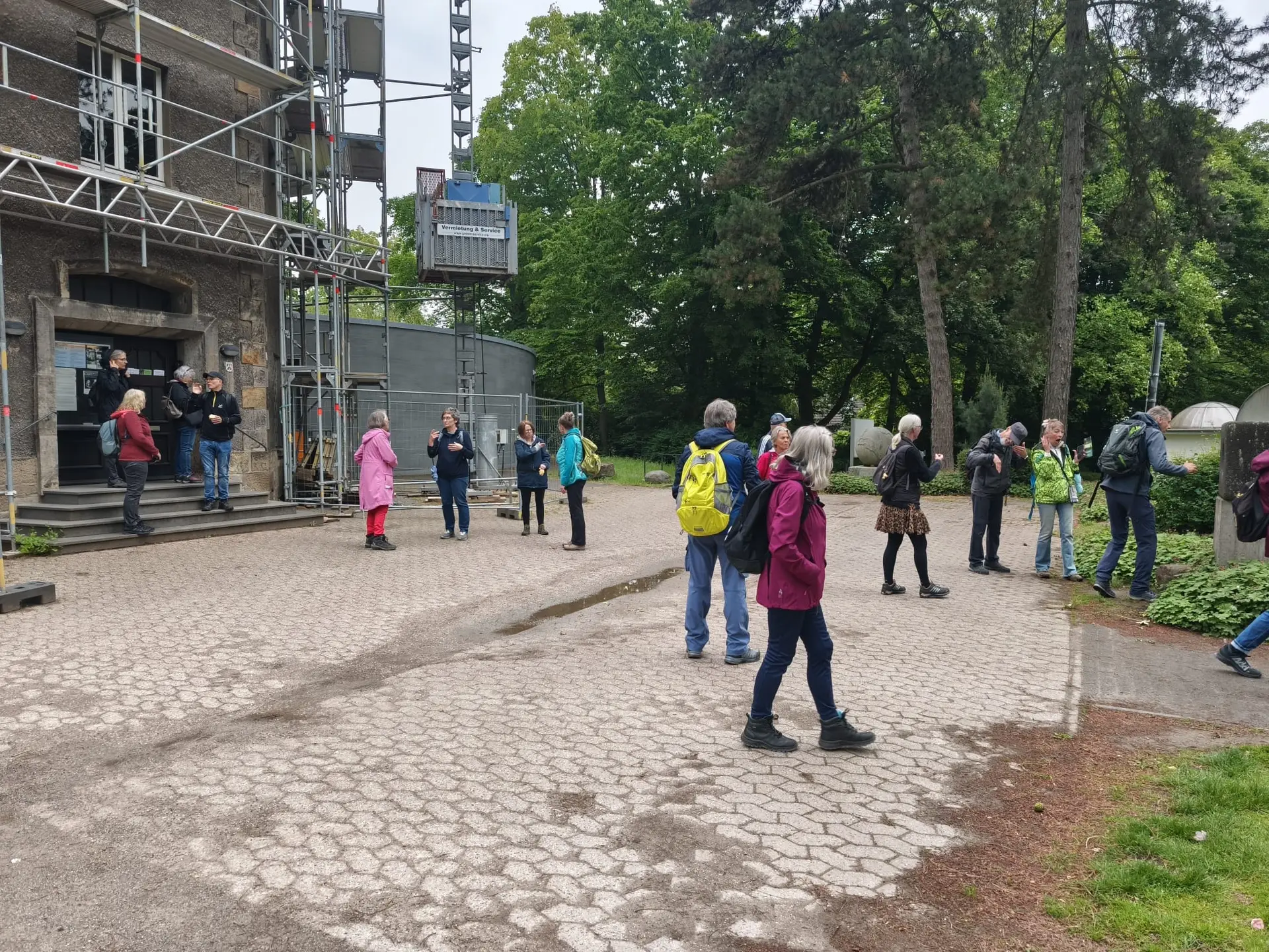 Anschließend ging es weiter zum Turm. Hier lautete die Quizfrage: „Wie heißt dieser Turm?“ – Die Antwort: Volkssternwarte. Unterwegs traf uns ein weiterer Wanderer am Rodelberg, der wegen einer Zugverspätung später dazukam.