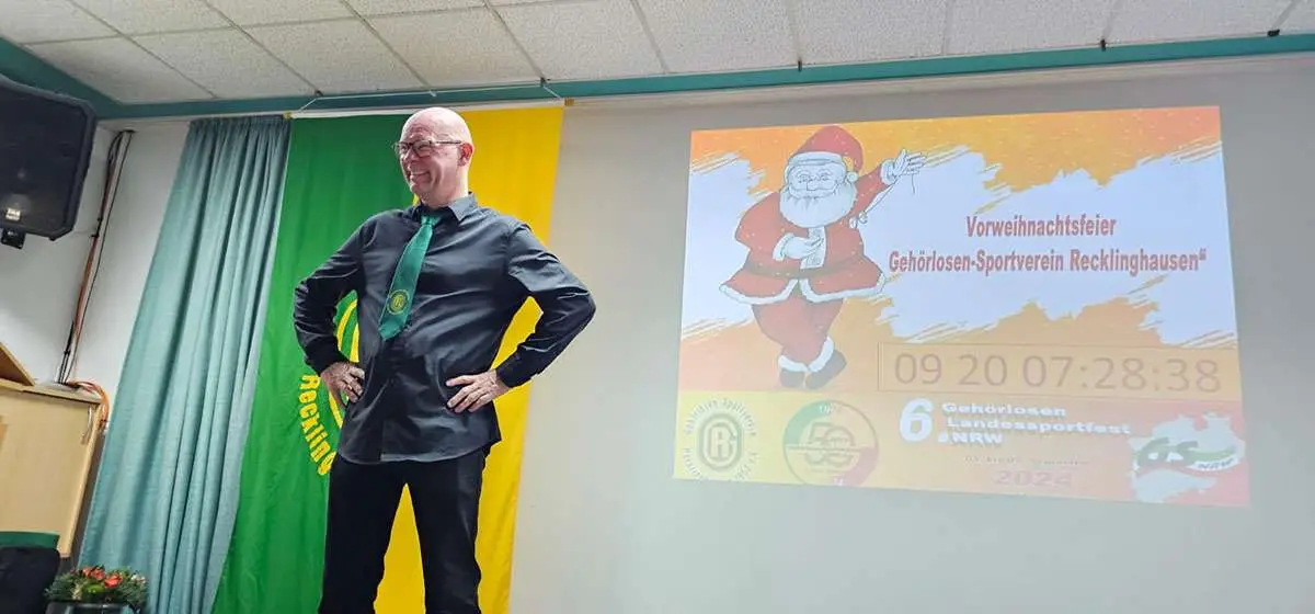 Eine Vorweihnachtsfeier fand am 16.12.2023 im Gehörlosenzentrum in Recklinghausen statt. Im Namen des Vorstands begrüßen wir Sie herzlich zu unserer Feier und haben 71-jähriges des Gehörlosen Sportvereins Recklinghausen.