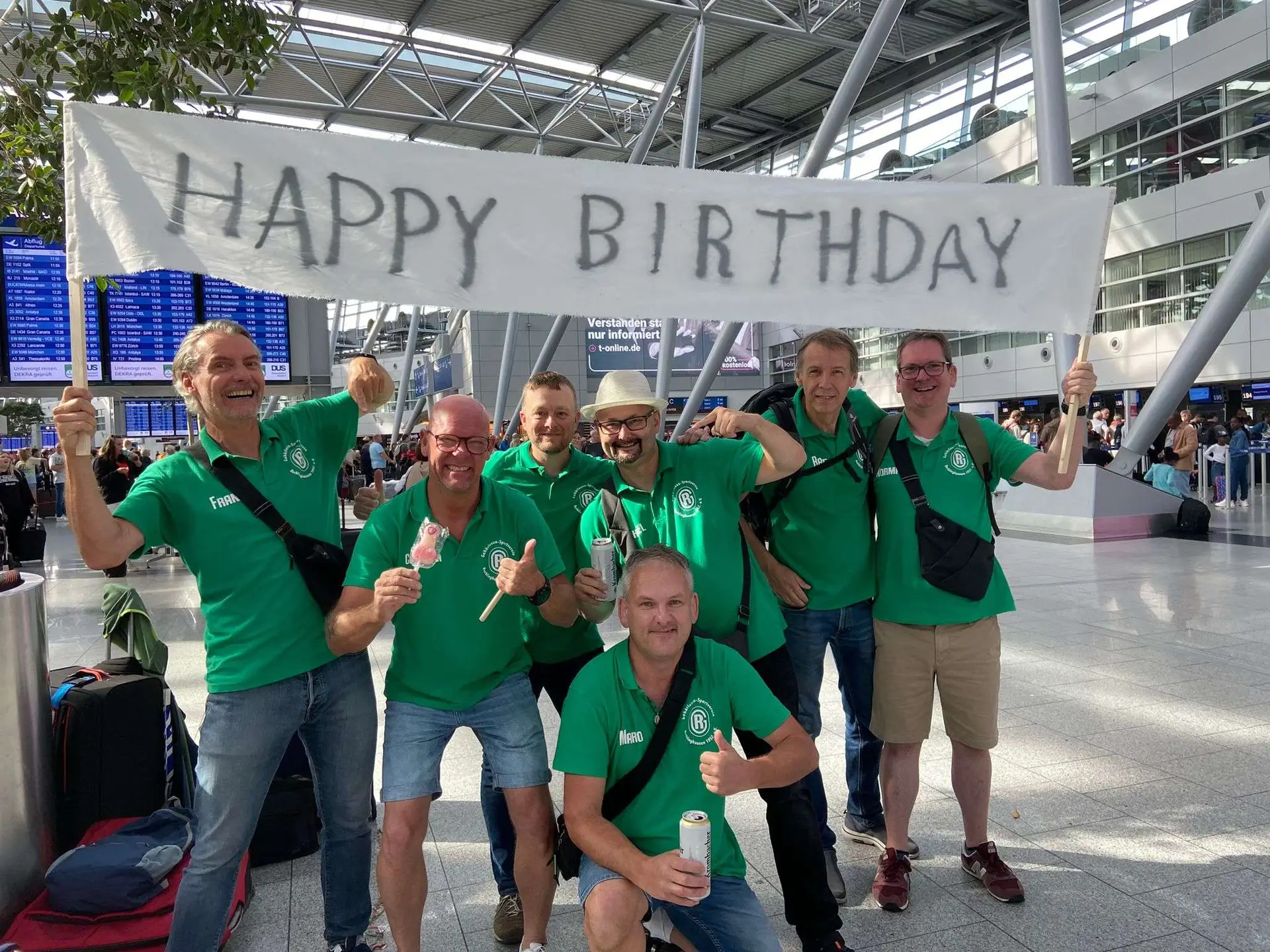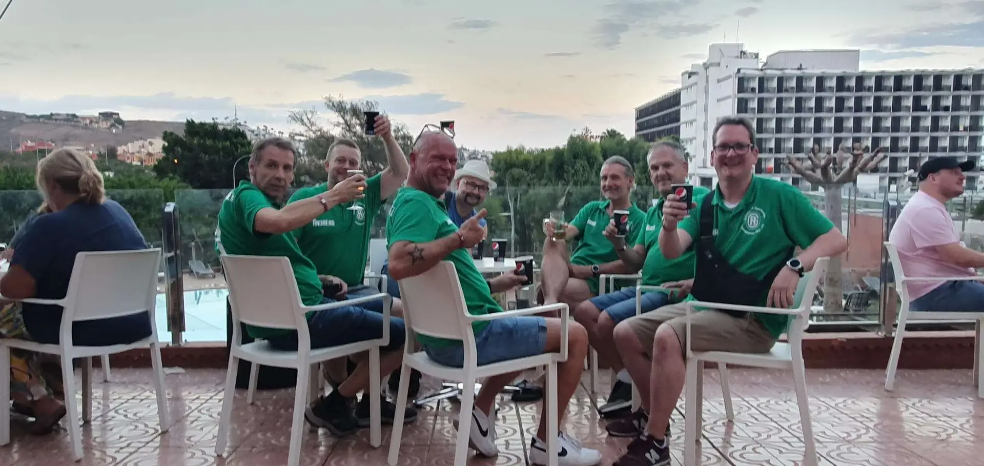 Vom 03. bis 10. September 2023 haben 7 Männer in Gran Canaria / Spanien teilgenommen. Wir hatten eine Überraschung für Christian Stern am Flughafen Düsseldorf, da er am Sonntag den 03. September Geburtstag hatte. Wir hatten ein lustige Geschenk für ihn und haben mit Bier geprostet. Wir sind gemeinsam geflogen und in Gran Canaria gelandet. Mit Bus ging es zum Hotel „Corona Roja“ (dt: Rote Krone) in Punta de Maspalomas mit anschließendem Abendessen.