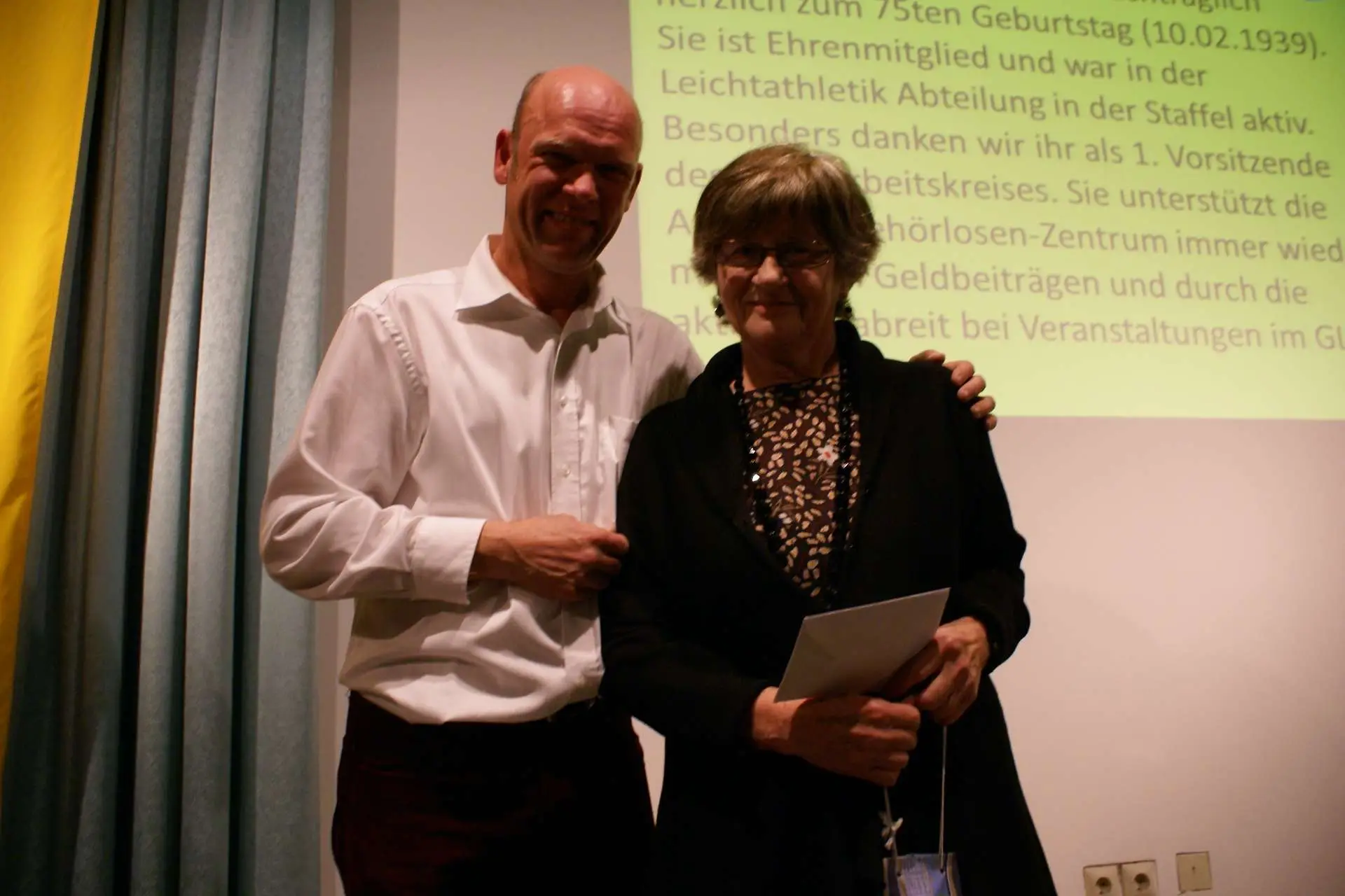 Den Vorsitzenden des Kreisverbandes, Herrn Uwe Trogant und seine Stellvertreterin, die 2. Vorsitzende, Frau Nao Riekötter, und den Vorsitzenden des Fördervereins, Herrn Hermann Riekötter leider nicht kommen. Die Leiterinne der Beratungsstelle, Frau Maria Raabe und Frau Nina Wiencek können beide leider nicht kommen. Natürlich ist auch die 1. Vorsitzende vom Vest. Gehörlosenverein, Frau Helga Grzelka, und auch die 1. Vorsitzende vom Handarbeitskreis Recklinghausen, Frau Hilde Thyret leider nicht kommt. Ganz besonders möchte ich noch Frau Holz von der Recklinghäuser Zeitung begrüßen und unsere Gebärdensprachdolmetscherin, Frau Alexandra Lorenz. Allen unseren lieben Gästen und natürlich auch allen Vereinsmitgliedern unseres Vereins noch einmal ein ganz herzliches Willkommen!