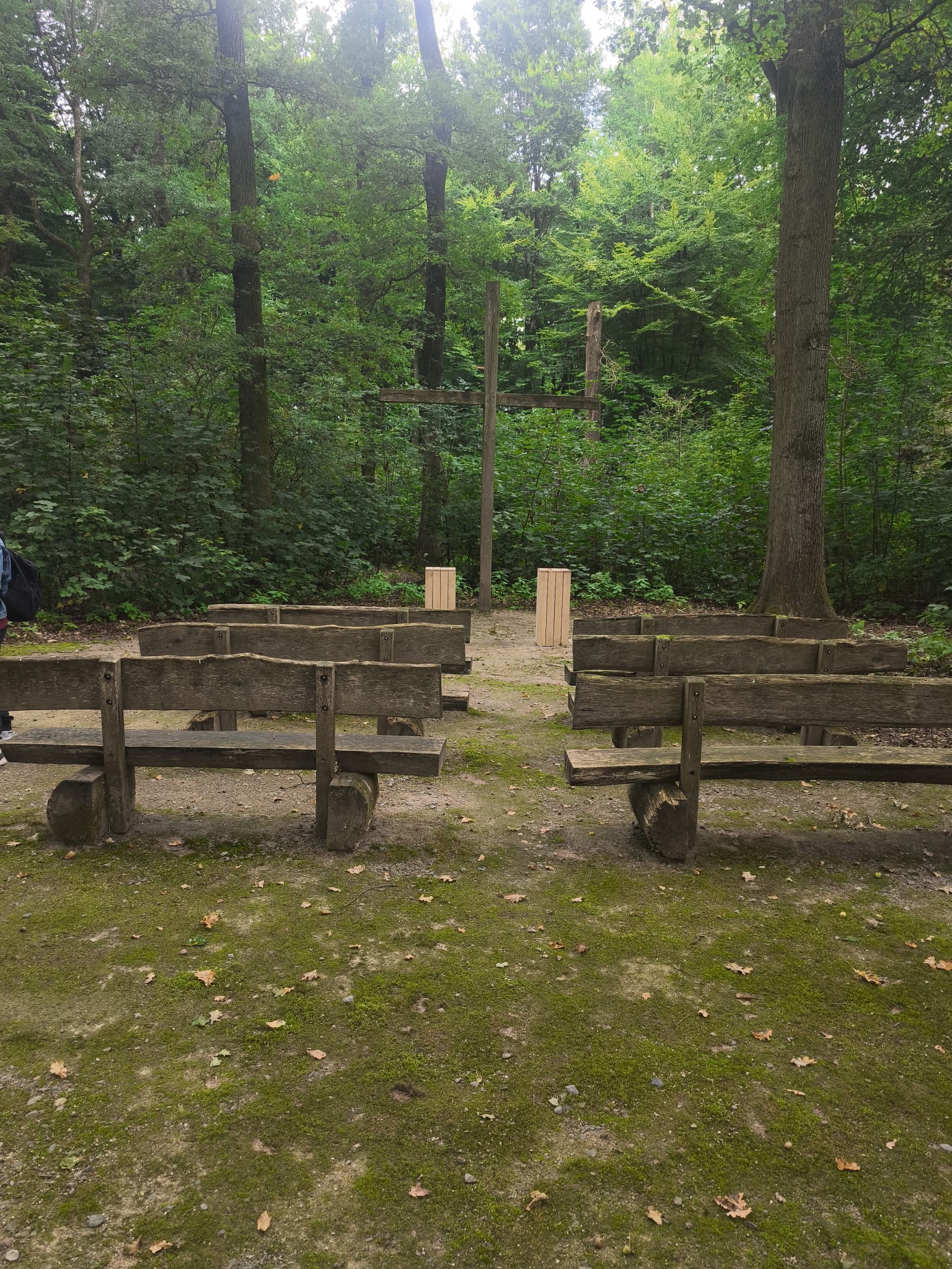 Von dort aus wanderten wir weiter zu einer wunderschönen Gedenk- und Andachtsstätte in der Natur, die mit Sitzbänken zum Verweilen einlädt. Diese Stätte wurde 1723 von der Herrin auf Westerholt, Gräfin Henrika von Aschenbrock zu Schonebeck, gestiftet. Wie Maria unter dem Kreuz, deren Herz sieben Schwerter durchbohrten, als sie ihren gemarterten Sohn sah (daher der Name), empfand auch die Gräfin tiefen Schmerz über den Tod des Grafen im Jahr 1707. Wir sahen auch das dazugehörige Holzkreuz in Westerholt.